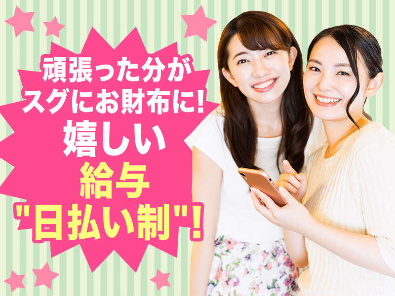 \高時給1350円/男女活躍中&未経験OKのシンプルワーク!お給料は全額日払いも選べる!