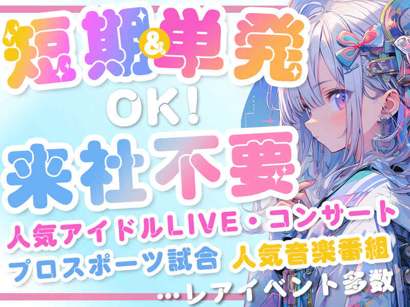 \履歴書不要のかんたんWEB登録/働ける日が決まっていなくても、登録すれば好きな時に働けます!激短1日~長期&自由シフトのイベントバイト★平日のみ、土日のみ、週1~など盛りだくさん、どれでも大歓迎です!