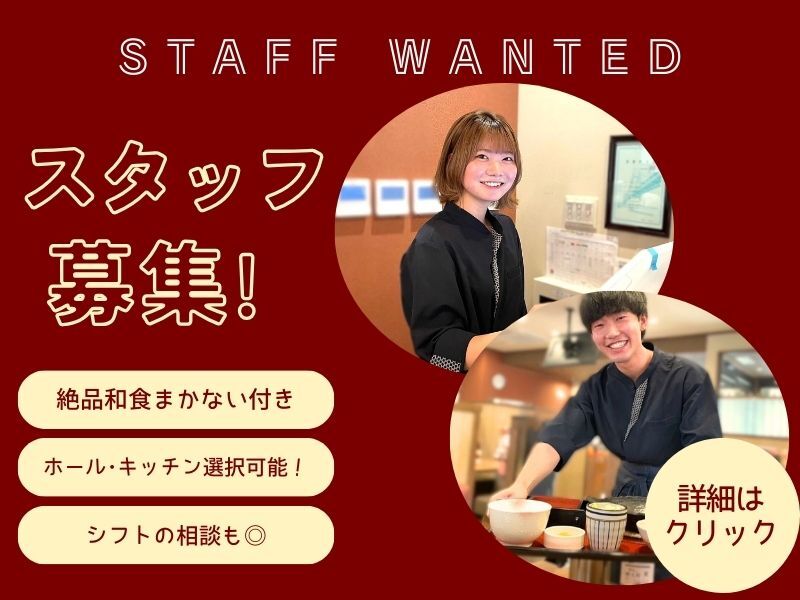 調理・接客などお任せします♪空いた時間にしっかり稼げる!幅広い世代大歓迎♪「この日は予定が…」なんてワガママも、あたたかく聞いてくれる店長や先輩たち。ゆとりある環境だから長く続けられているスタッフも。