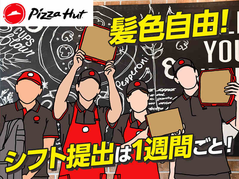 【デリバリーSTAFF募集】未経験からでも美味しいピザが作れちゃいます♪接客は、店長や先輩スタッフが丁寧に教えるので安心!ピザハットは、ピザを通じて地域のみなさまにおいしさとしあわせを提供しています。