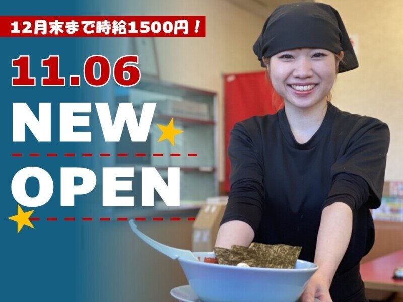 全国に190店舗以上展開しているSNSでも話題の人気ラーメン店「山岡家」!11月待望オープン!24時間営業だから好きな時間に働ける!現役スタッフから働きやすいと高評価!年末手当で12/30~1/4まで時給+500円です!