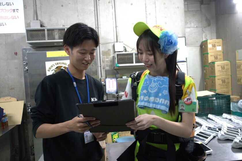 ビールの売り子を陰で支える「チェッカー」募集!F1のピットクルーさながら売り子のビアタンクを換えたり、売店のヘルプに入ったり。/未経験OK
