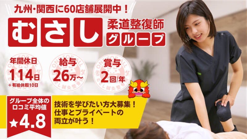 未経験の方OK◎むさし鍼灸整骨院グループにて柔道整復師の募集です!選べる働き方で完全週休2日も可能◎キャリアアップ研修もあり安心の待遇で働きやすい職場環境です!