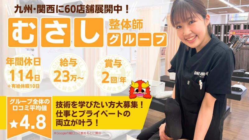 未経験の方OK◎むさし鍼灸整骨院グループにて鍼灸師の募集です!選べる働き方で完全週休2日も可能◎キャリアアップ研修もあり安心の待遇で働きやすい職場環境です!