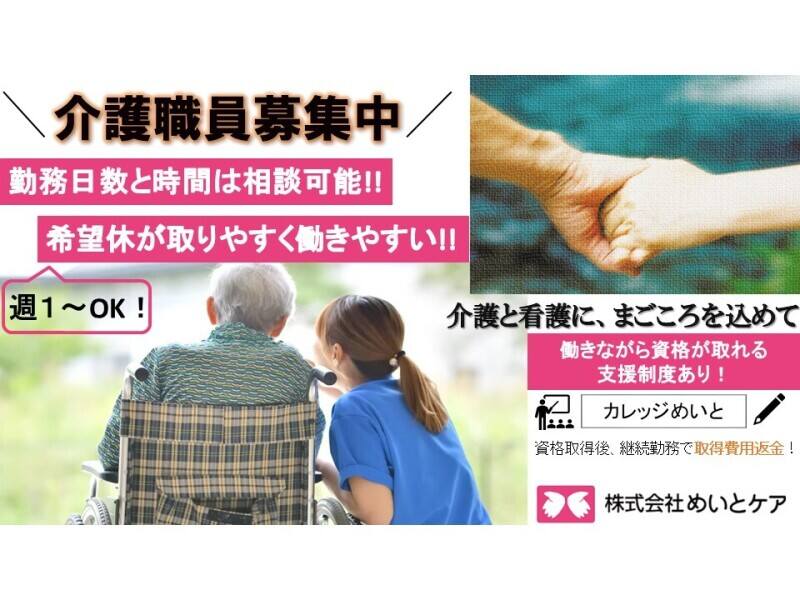めいと中金杉では介護職/アルバイト・パートを募集中!マイカー通勤OK!スタッフの働きやすさにこだわる『めいとケア』で一緒に働きませんか?