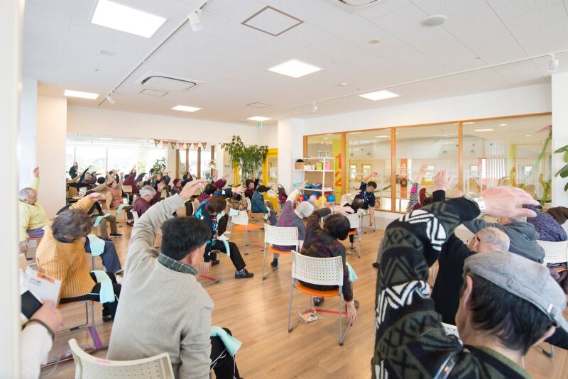 等施設では 様々なプログラムを自由に選択して 体験していただくことで、 楽しみながら 機能回復を目指しております。 敷地内に クリニックやショートステイも併設。 全面的にサポートできる環境です。