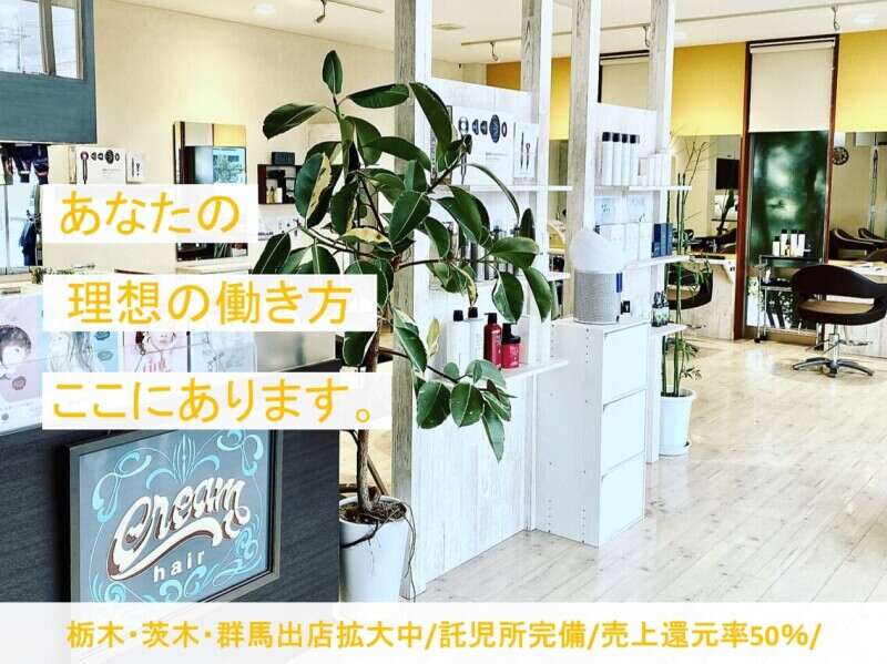 栃木県 下都賀郡壬生町にあるCream hair makeL店にて美容アシスタントスタッフを募集!ブランクのある方や新卒・第二新卒、アシスタント経験のみの方も大歓迎!