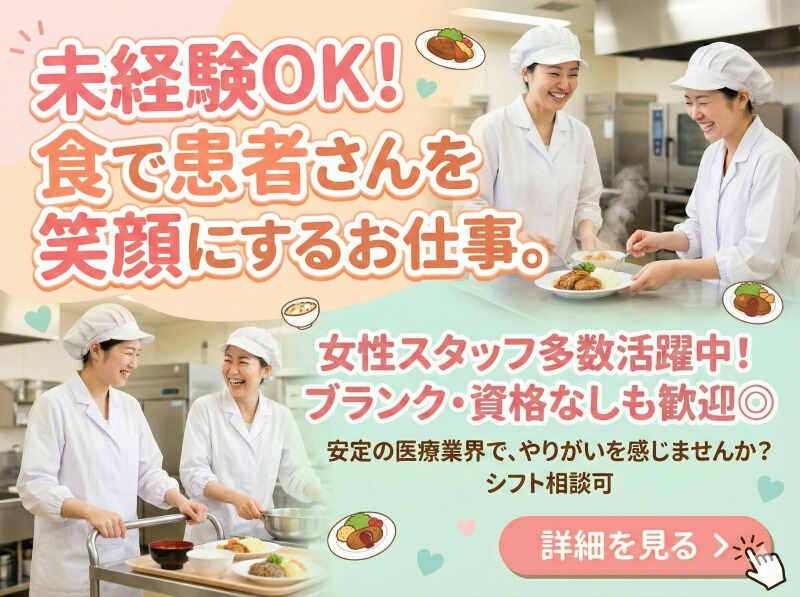 <新棟オープン!託児所あり・寮、社宅完備!>調理師の募集です。勤務はローテーション制で休みたい日は希望が出せますので、ご家庭の用事などご自身の都合に合わせた働き方ができます。ご応募お待ちしております。