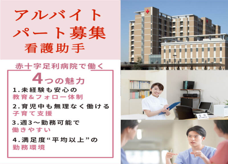 【週3日~勤務OK/昇給あり/社会保険制度完備/施設見学可】足利赤十字病院の看護助手業務