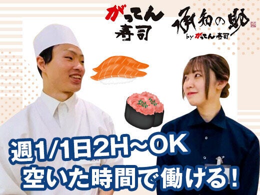 寿司店のホール・キッチンスタッフとしてのお仕事です!業務はどちらか選べます!週1日~・1日2時間~勤務OK◎経験や資格などは必要ありません!うれしい従業員割引制度あり!社員登用ありです♪