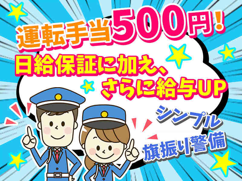 \★オープニングで大募集中★/ 運転手当500円!日給保証に加え、さらに給与UP。 基本は旗を振るだけのシンプルな交通誘導業務 定年後の**『働きたい!』**を応援する、働きやすい環境がここにあります!